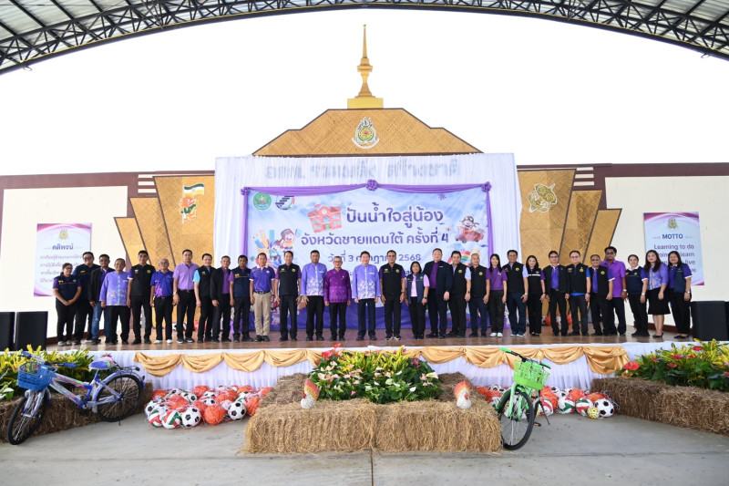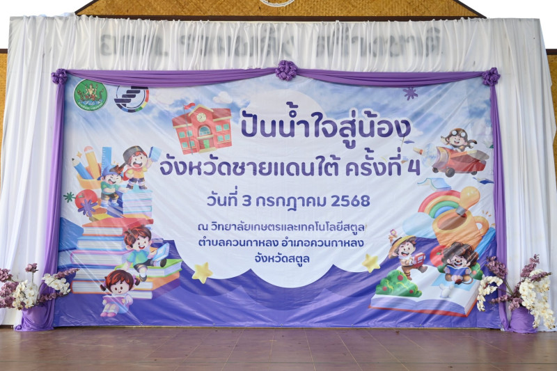วันที่ 3 กรกฎาคม 2568 นายวิศิษฐ์ ศรีสุวรรณ์ อธิบดีกรมส่งเสริมสหกรณ์ เป็นประธานในพิธีเปิดโครงการ “ปันน้ำใจสู่น้องจังหวัดชายแดนใต้“ ครั้งที่ 4 โดยมี นายประวัติ แดงบรรจง รองอธิบดีกรมส่งเสริมสหกรณ์ นายสันทาน สีสา รองอธิบดีกรมส่งเสริมสหกรณ์ นายพิษณุ พินรอด ผู้อำนวยการสำนักพัฒนาและถ่ายทอดเทคโนโลยีการสหกรณ์ นายสุวิทย์ ทุมมณี สหกรณ์จังหวัดสตูล นายเจตน์ เกตุมุหย๊ะ ผู้อำนวยการวิทยาลัยเกษตรและเทคโนโลยีสตูล นางสาวสุพา ปิยะเขตร ผู้อำนวยการศูนย์ถ่ายทอดเทคโนโลยีการสหกรณ์ที่ 17 จังหวัดสงขลา และคณะผู้บริหารกรมส่งเสริมสหกรณ์ หัวหน้าส่วนราชการ ร่วมในพิธีเปิด ณ วิทยาลัยเกษตรและเทคโนโลยีสตูล อำเภอควนกาหลง จังหวัดสตูล โอกาสนี้ อธิบดีกรมส่งเสริมสหกรณ์ และคณะ ได้รับชมการแสดงชุด “ตีกาบูดายา เสน่ห์มนตราเมืองสโตย”ของนักเรียน พร้อมมอบทุนการศึกษาและอุปกรณ์กีฬาแก่โรงเรียนในจังหวัดชายแดนใต้ จำนวนจำนวน 25 โรงเรียน ผ่านผู้แทนรับมอบ จำนวน 5 ราย ได้แก่ ผู้แทนรับมอบจากกองกำกับการตำรวจตระเวนชายแดนที่ 43 และสหกรณ์จังหวัดสงขลา ผู้แทนกองกำกับการตำรวจตระเวนชายแดนที่ 44 และสหกรณ์จังหวัดปัตตานี ยะลา และนราธิวาส ผู้แทนโรงเรียนตำรวจตระเวนชายแดน บ้านส้านแดง ผู้แทนโรงเรียนตำรวจตระเวนชายแดนยูงทองรัฐประชาสรรค์ และผู้แทนวิทยาลัยเกษตรและเทคโนโลยีสตูล