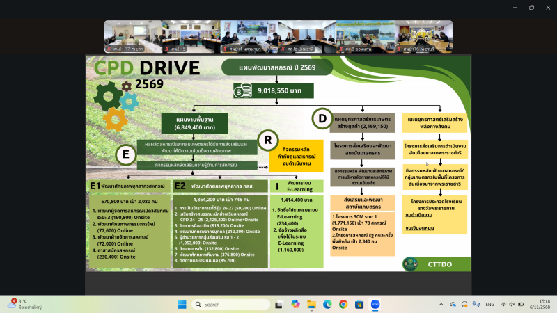 วันที่ 6 พฤศจิกายน 2568 นางสาวสุพา ปิยะเขตร ผู้อำนวยการศูนย์ถ่ายทอดเทคโนโลยีการสหกรณ์ที่ 17 พร้อมด้วย บุคลากรศูนย์ฯ17 เข้าร่วมประชุมบุคลากรสำนักพัฒนาและถ่ายทอดเทคโนโลยีการสหกรณ์ ผ่านระบบ Zoom Meeting โดยมีนายมนัส เทพรักษ์ รองอธิบดีกรมส่งเสริมสหกรณ์ เป็นประธานการประชุม พร้อมด้วยนายพิษณุ พินรอด ผู้อำนวยการสำนักพัฒนาและถ่ายทอดเทคโนโลยีการสหกรณ์ ชี้แจงวาระการประชุมและตอบรับนโยบาย “Go To DRIVE” ซึ่งเป็นแนวทางสำคัญในการขับเคลื่อนแผนปฏิบัติงานและการบริหารงบประมาณรายจ่าย ประจำปีงบประมาณ พ.ศ. 2569 เพื่อเพิ่มประสิทธิภาพการดำเนินงานของหน่วยงานให้สอดคล้องกับทิศทางของกรมส่งเสริมสหกรณ์นอกจากนี้ ที่ประชุมได้หารือแนวทางการส่งเสริมการใช้นมสหกรณ์เป็นอาหารว่างและเครื่องดื่มในการประชุมและกิจกรรมต่าง ๆ มาตรการดังกล่าวมีเป้าหมายเพื่อช่วยเสริมสร้างความมั่นคงด้านรายได้ให้แก่เกษตรกรผู้เลี้ยงโคนมในภาวะราคาน้ำนมดิบตกต่ำ และเป็นการสนับสนุนสินค้าของสหกรณ์อย่างเป็นรูปธรรม การประชุมจัดขึ้น ณ ห้องประชุม ฝ. 101 ชั้น 1 อาคารฝึกอบรมส่วนกลาง สำนักพัฒนาและถ่ายทอดเทคโนโลยีการสหกรณ์ เขตดุสิต กรุงเทพมหานคร