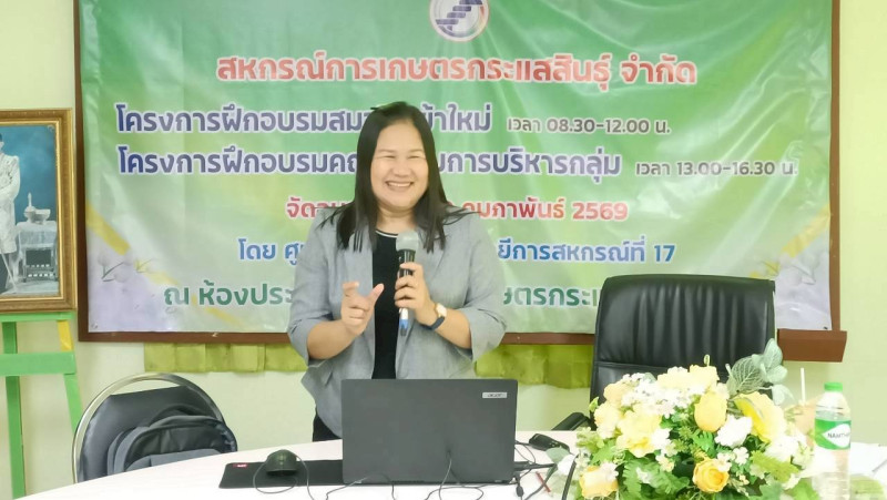 วันที่ 20 กุมภาพันธ์ 2569 นางสาวสุพา ปิยะเขตร ผู้อำนวยการศูนย์ถ่ายทอดเทคโนโลยีการสหกรณ์ที่ 17 พร้อมเจ้าหน้าที่ศูนย์ฯ ได้รับเชิญเป็นวิทยากร โครงการอบรมสมาชิกใหม่ ให้แก่สหกรณ์การเกษตรกระแสสินธุ์ จำกัด หัวข้อวิชา อุดมการณ์สหกรณ์ หลักการสหกรณ์ วิธีการสหกรณ์ และสิทธิหน้าที่ของสมาชิก กลุ่ม เป้าหมายประกอบด้วย สมาชิกใหม่ของสหกรณ์การเกษตรกระแสสินธุ์ จำกัด รวมทั้งสิ้น 30 คน (ช่วงบ่าย) ได้รับเชิญเป็นวิทยากร โครงการฝึกอบรมคณะกรรมการ การบริหารกลุ่ม หัวข้อ ทบทวนความรู้ ความเข้าใจการสหกรณ์และบทบาทหน้าที่ผู้นำกลุ่ม' แลกเปลี่ยนเรียนรู้และรับฟังปัญหาอุปสรรค ในการปฏิบัติหน้าที่ของผู้นำกลุ่ม ของสหกรณ์การเกษตรกระแสสินธุ์ จำนวน 48 คน ณ ห้องประชุมสหกรณ์การเกษตรกระแสสินธุ์ จำกัด อ.กระแสสินธุ์ จ.สงขลา